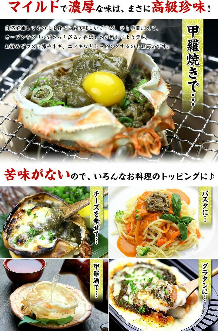 他の画像を見る 香ばしくマイルドで濃厚な味が絶品! 高級珍味かにみそ甲羅盛り×6個入り(33g×3個×2パック) お歳暮 年末年始 送料無料 クール便(冷凍) 価格 ¥ 3,999 税込 詳細を見る お気に入りに登録する