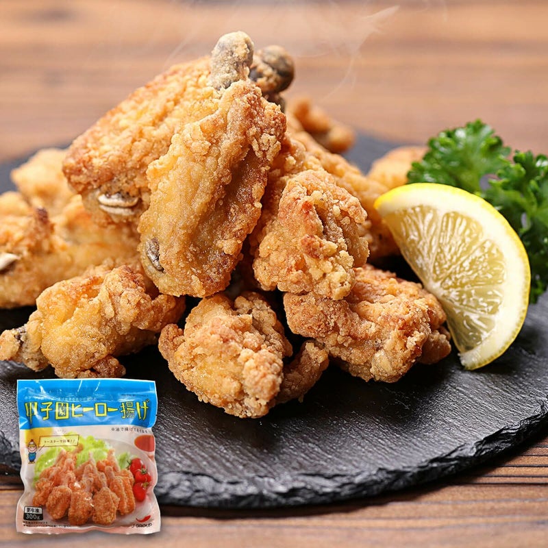 ★高校野球のメッカ甲子園球場がある、兵庫県西宮市のご当地グルメ! ★食べやすい手羽2ツ割スタイル♪ ★サクサクの衣と、あとを引くうまさの特性ニンニクタレが絶品! ★トースターで焼くだけの簡単調理♪ 甲子園ヒーロー揚げは鶏の手羽中唐揚げです。 かつて甲子園では、鶏(手羽)のからあげをメニューに取り入れている飲食店が多くありました。 「ヒーロー」という呼び方も昔からあるもので、中国や台湾から伝わった「ジーロウ」=鶏肉(の唐揚げ)、からきているという説などがあります。 そんな「甲子園ヒーロー揚げ」は大人から子供まで、誰もがヤミツキになる、あとをひく旨さの特性のニンニクダレとサクサクの衣が特徴です。 骨を持って片手で食べられる上に、トースターで焼くだけの簡単調理である為、日々の食卓の一品やお弁当にもピッタリな一品です。 とっても美味しくて使いやすい、西宮のソウルフード「甲子園ヒーロー揚げ」をぜひご賞味ください。 |