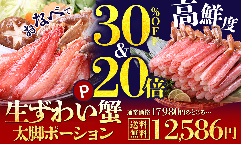 30%OFF&ポイント20%還元💥 お刺身鮮度⚡生ずわいがに太脚ポーション🦀