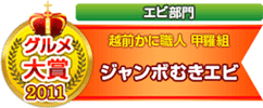 ![]() 楽天市場グルメ大賞(エビ部門)を受賞。 ネットショップコンテスト北陸2012ファイナリスト賞を受賞。 |