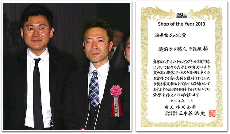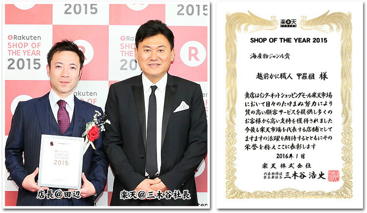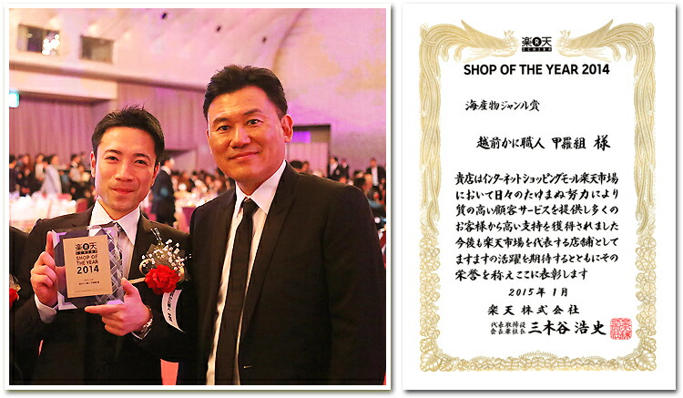 1998年からスタートした「Shop of the Year」。約4万店舗以上を誇る楽天市場の中から2015年度の客様による得票数、本年度の売上、注文件数、売り上げの伸張率、お客様対応などから、総合賞、ジャンル賞、サービス賞、特別賞を決定する、楽天市場で最も栄えある賞です。