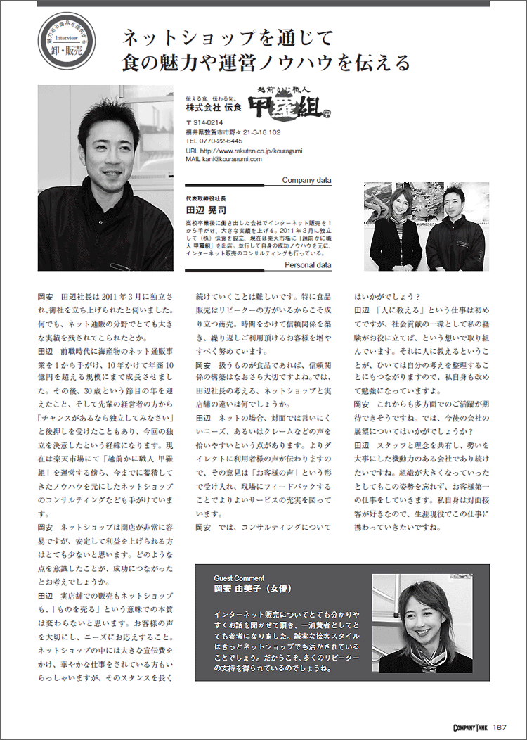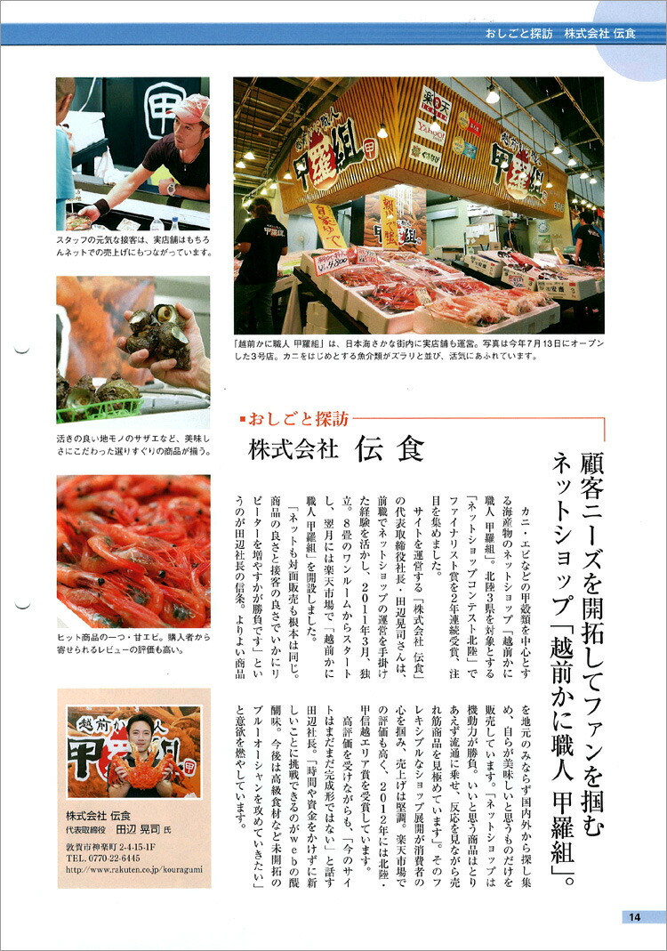 国際情報マネジメント発行のビジネス情報誌「カンパニータンク」で、弊社運営サイト【越前かに職人 甲羅組】が紹介されました。