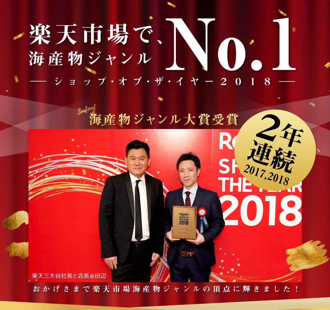 1998年からスタートした「Shop of the Year」。5万店舗以上を誇る楽天市場の中から2018年度の客様による得票数、本年度の売上、注文件数、売り上げの伸張率、お客様対応などから、総合賞、ジャンル賞、サービス賞、特別賞を決定する、楽天市場で最も栄えある賞です。