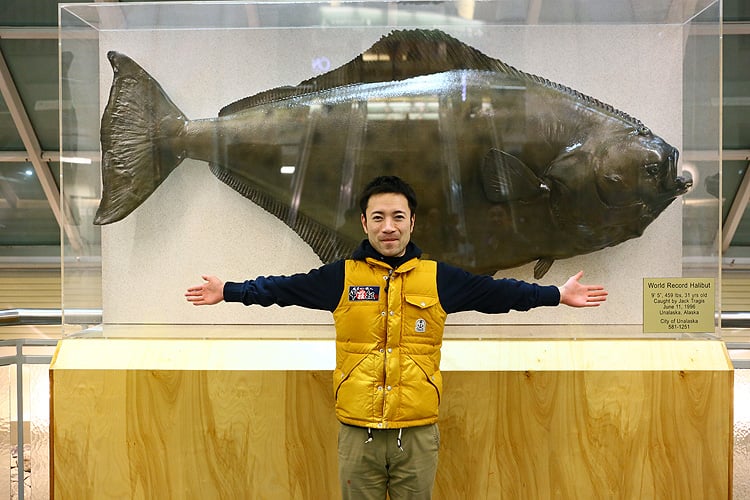 アンカレッジ空港に展示してあるワールドレコードのハリバット(Halibut)です。