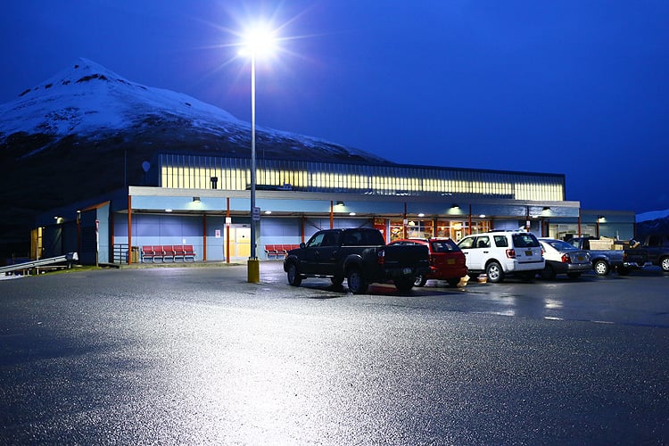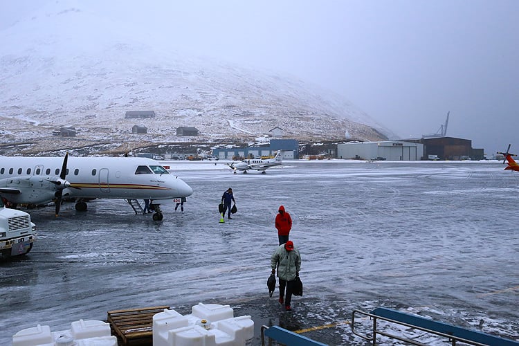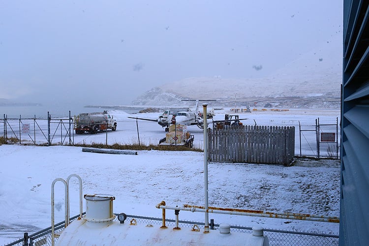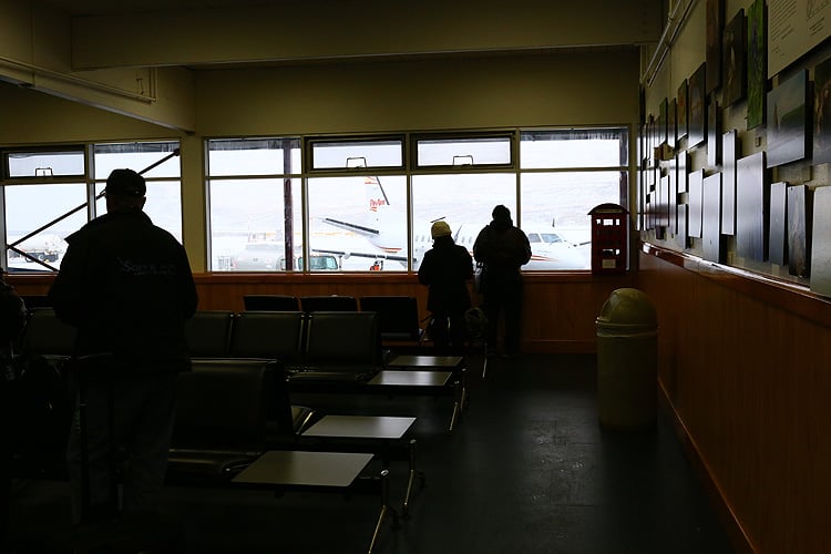翌朝、ダッチ・ハーバー空港へ。AM9時なのに緯度が高いので日の出が遅く、外は真っ暗です。