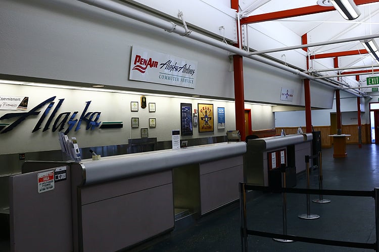 アンカレッジからダッチ・ハーバーの飛行機(写真左)は飛んでますが、