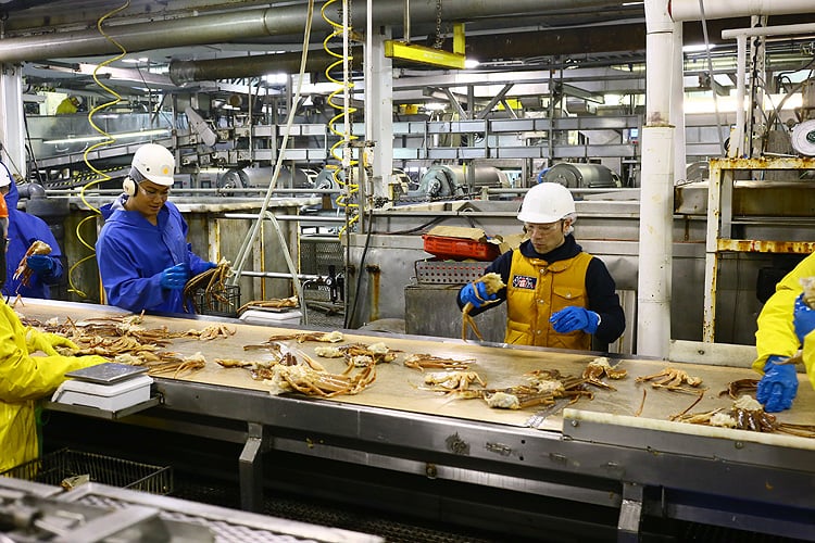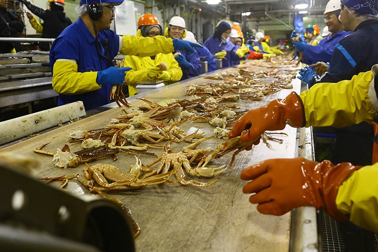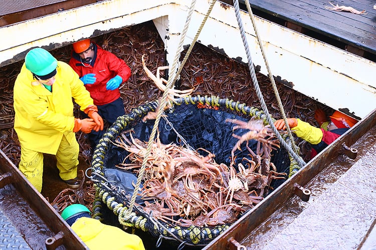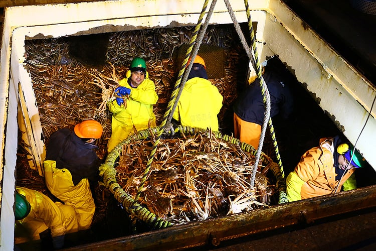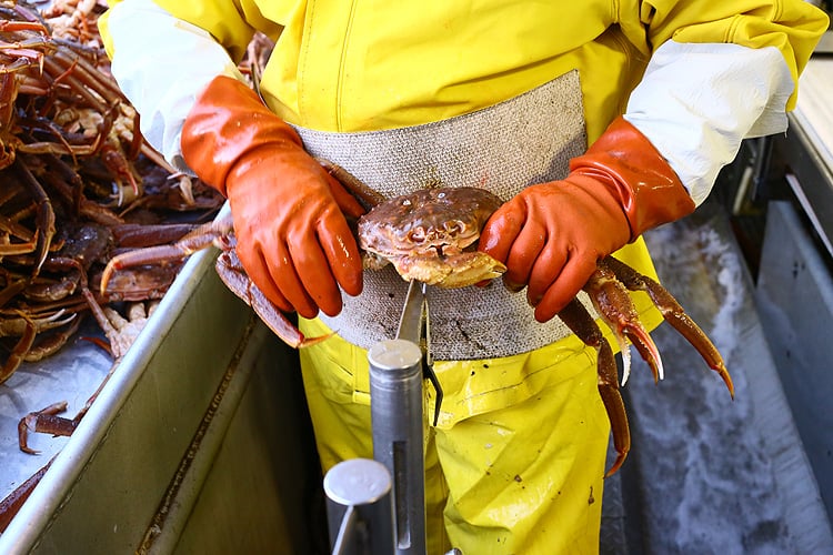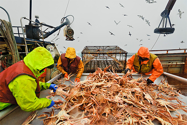 アラスカ産のカニは厳重な政府の管理のもと、資源保護のために期準以上の大きなカニしか漁獲しません。漁業資源の枯渇を招く乱獲はせず、小さなカニは放流します。漁業期間は極めて短く、ズワイガニが1~3月、タラバガニは10~12月の最高に身入りの良い時期限定。
