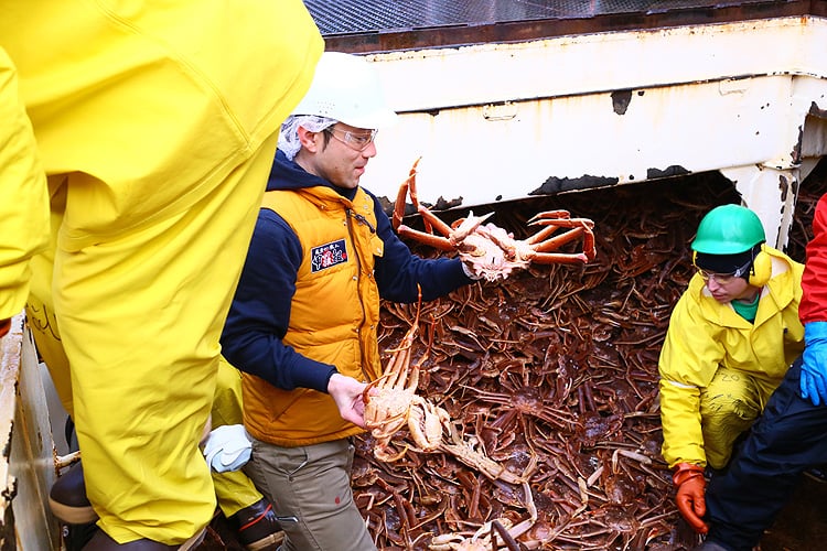 急いで船に行ってみると、活きの良いズワイガニが大漁です!
