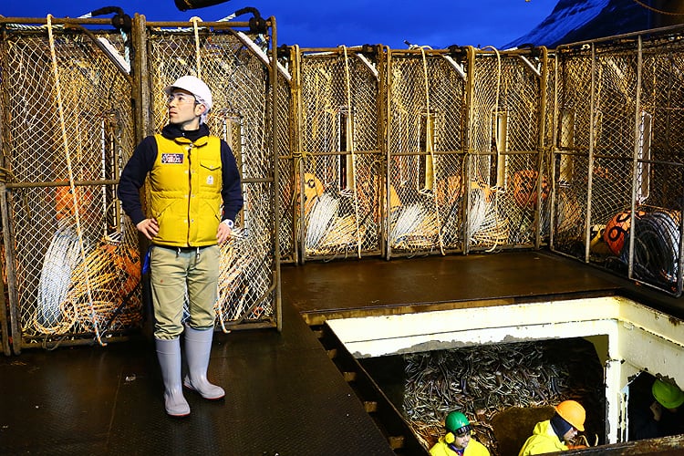 店長@田辺も船内に入れてもらい、カニの検品です!