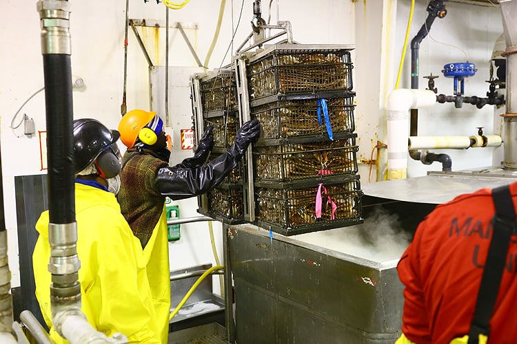 そして、規格のサイズごとに鉄かごの中に42ポンド(約19kg)入れて、次の工程へ…