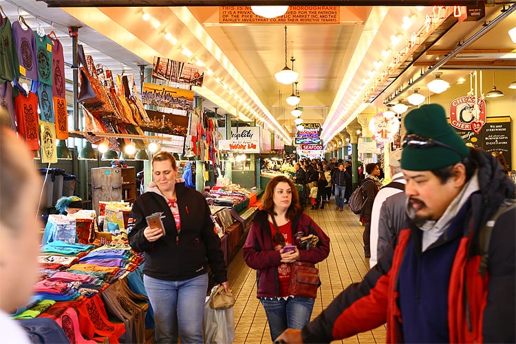 そして、道を挟んだ向かい側には「パイク・プレース・マーケット Pike Place Market」と呼ばれる商店街があります。