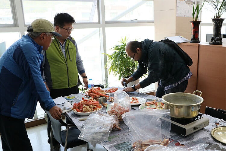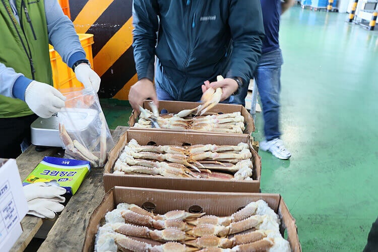 「3日後に釜山にて生ズワイガニとボイルズワイガニの入札があります!それぞれ30~40トンのまとまった数量で、サイズも大きく、品質も良いみたいですよ!」