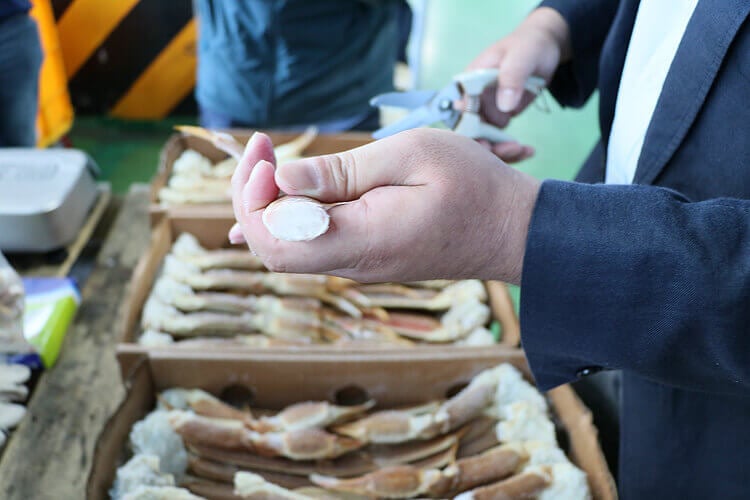 今回検品しているカニは40トンまとめての入札となりますので、総額でいうと8,000万円くらい。