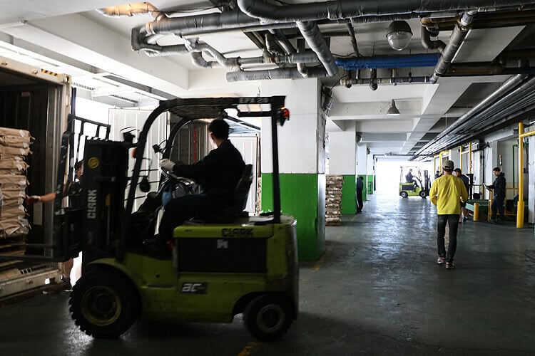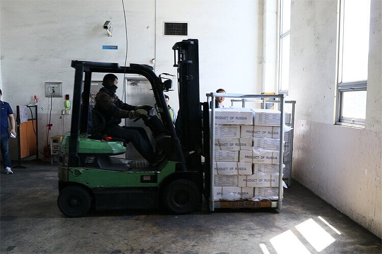 ロシア船の船長と船員がいたので挨拶をしてから検品開始!
