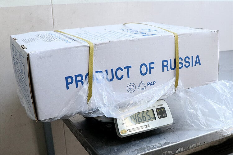 ネット5kgの規格品なので、規定では解凍後に5㎏以上なければなりません。