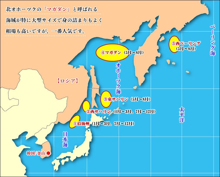 やはり5月~6月に漁獲する北オホーツク(マガダン)海域のカニが一番良さそうですね。