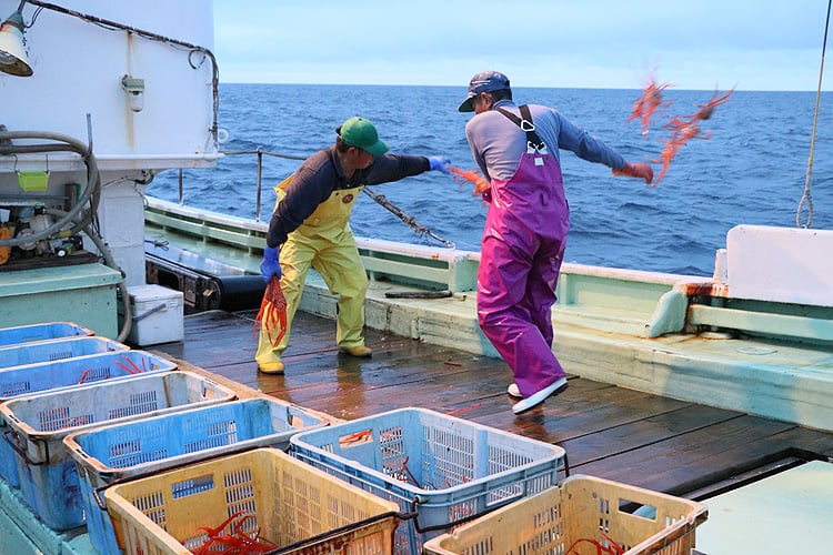 | 漁法 | かにカゴ漁(かにカゴの付いた漁具を3~5日程海底に沈めて引きあげる) |