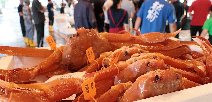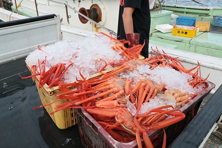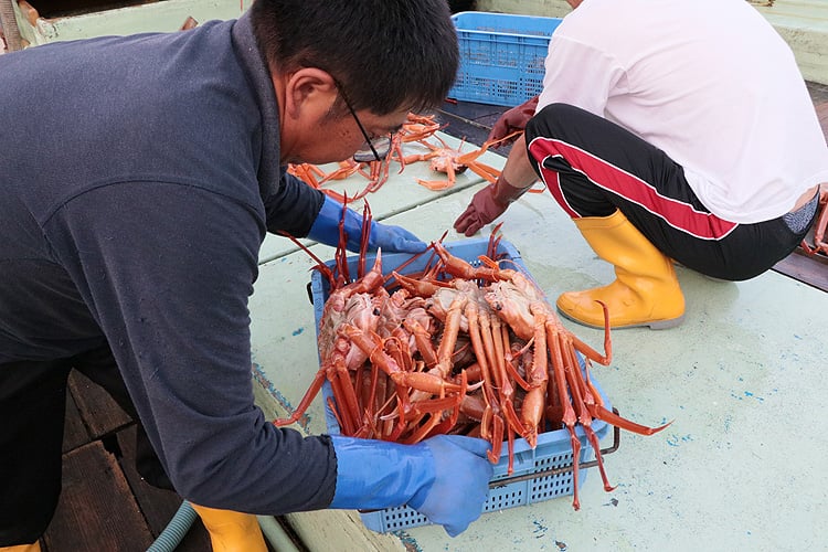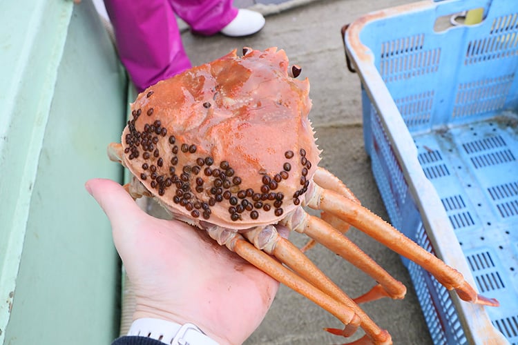 漁師さんに話を聞くと、ズワイガニと紅ズワイガニのハーフで「黄金ガニ」と呼ばれているそうです!