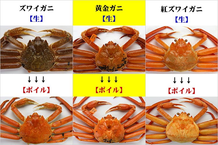 黄金ガニとは、ズワイガニのオスと紅ズワイガニのメスの間にできたカニの呼び名です。(正式名ではなく、生の状態の見た目が黄金色なので、そう呼ばれています。)
