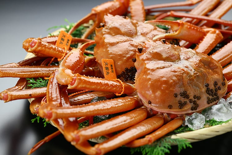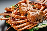 紅ズワイガニ1,000~2,000匹に1匹しか捕れないと言われるほど貴重なカニで、ズワイガニのように身の入りが厚く、さらに紅ズワイガニのような甘みがあり、それぞれの長所を併せ持つその味は、カニの頂点に立つとも言われています。