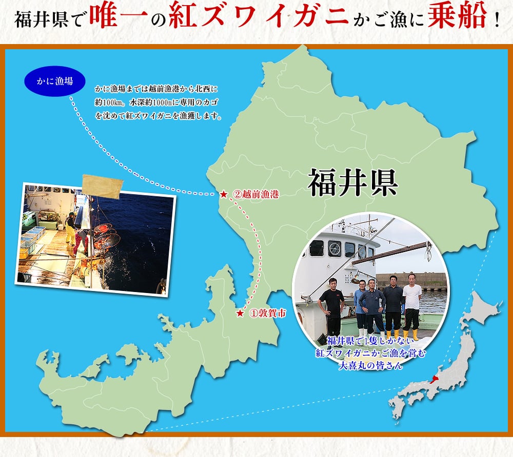 紅ズワイガニの漁獲量が多い山陰地方では分母が大きくなるので、希少と言えどもまだ手に入りやすいですが、今回販売する福井県産となると、そもそも紅ズワイガニ漁をする船が1隻しかありませんので、大変希少性が高いため販売は、水揚げ次第となります。