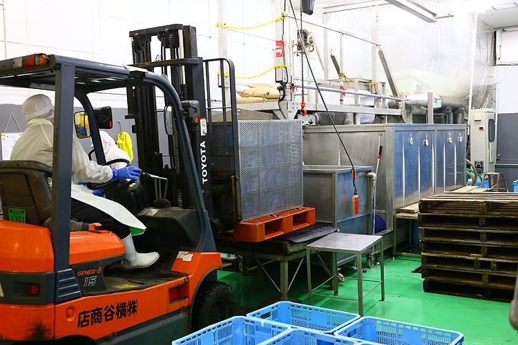 前日にイケスに入れておいてくれたので加工場は予定通り視察できるとのこと。