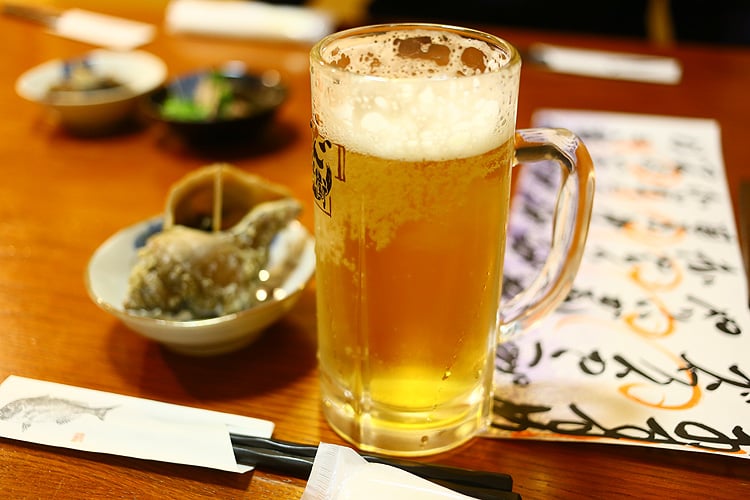 仕事終わりに飲むサッポロ生ビールとつぶ貝。最高ですね~