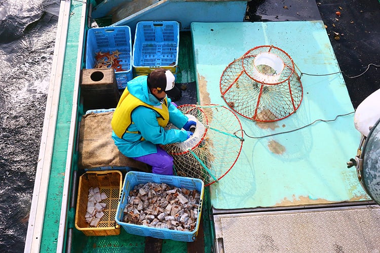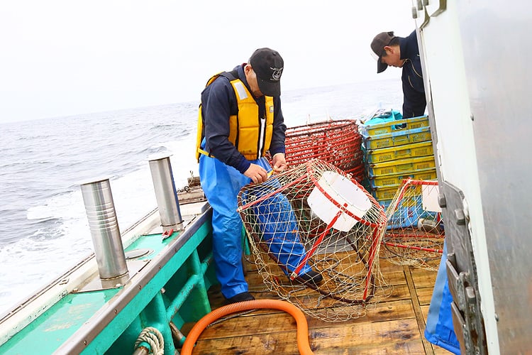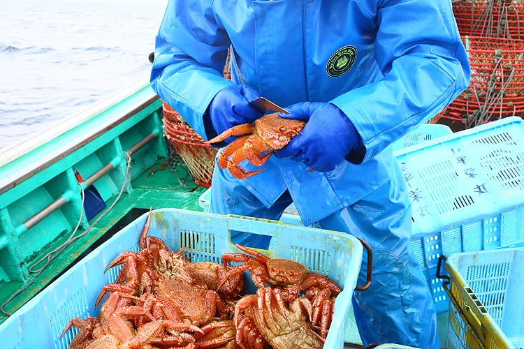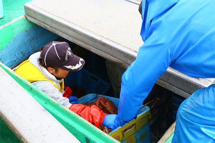 鮮度が落ちる刺し網ではなく、カゴ漁の一級品限定