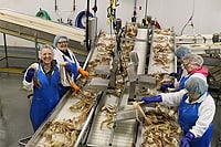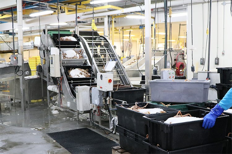 漁獲量が多く、漁期が限定されているという漁業の性質と、カニを生きたまま加工する必要性から、ニューファンドランドには加工能力の高い、非常にたくさんのカニ加工施設があります。持続可能な豊富な漁獲量と、生産能力の高い大型工場で鮮度を落とさず、質の高い製品を安定供給できるところが、ニューファンドランドのカニの特徴であり、日本の料亭や民宿の料理人だけでなく、世界の高級ホテルのシェフから評価されています。