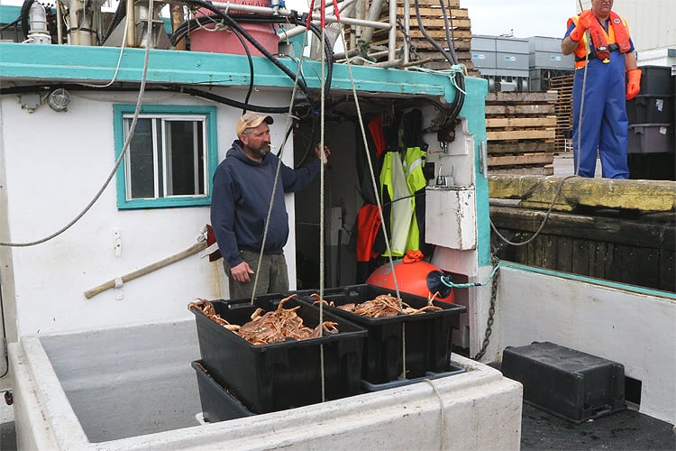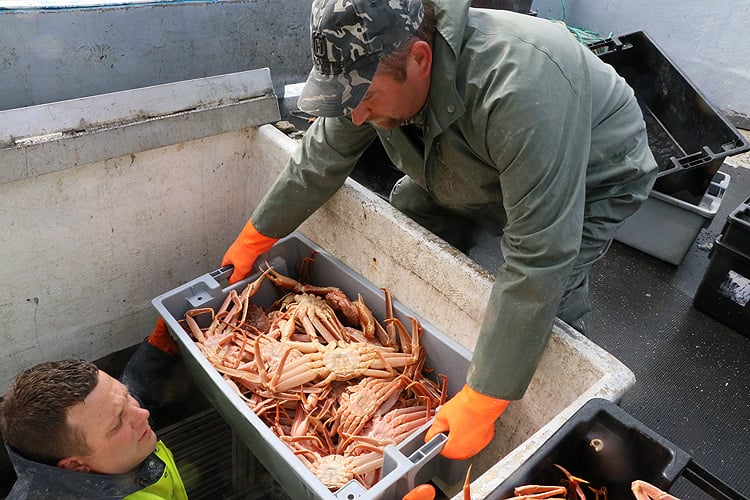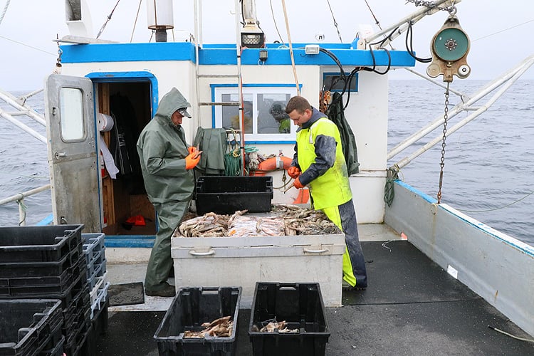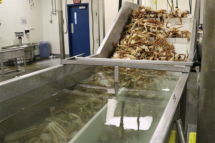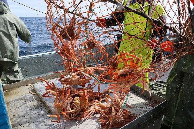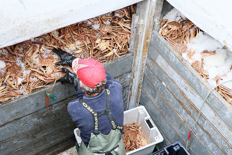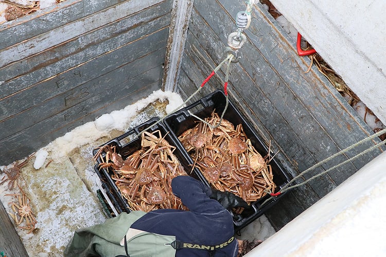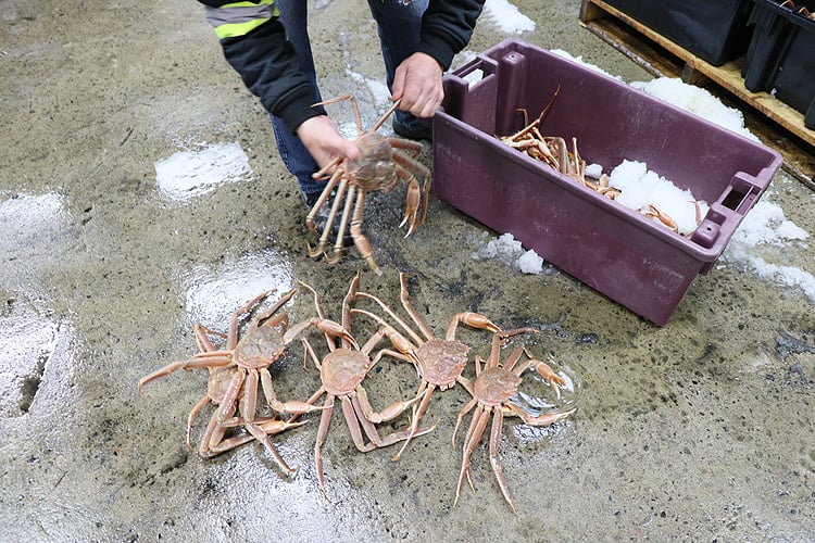 ここでは4月中旬ごろからカニ漁が始まり、決められた漁獲枠がなくなるか、身入りが悪くなる夏前に終了します。カナダ産ズワイガニの年間の水揚げ量は約100,000トンで世界最大です。(日本の約20倍、ロシアの約4倍、アラスカの約3倍)