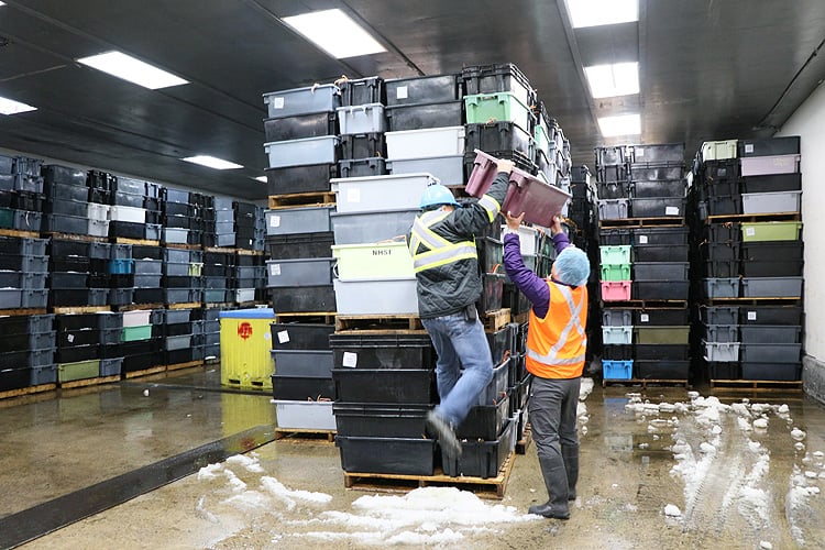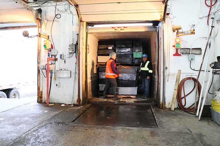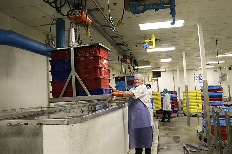 港に戻ると、すぐさま工場に運ばれます。