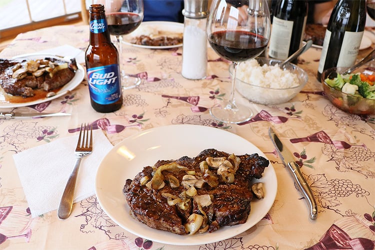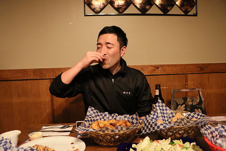 商談終了後に、もしよかったら夕食を一緒に食べようと工場のオーナーに誘われたので自宅に行ってみると、奥さんや子ども達も一緒です。そこでオーナー自ら焼いてくれた500gの特大ステーキと、お気に入りの赤ワインをご馳走になりました。初めて会ったのにどうしてここまでしてくれるのかと聞くと、「大手水産商社は取扱量も多い重要なパートナーだけど、あなたはファミリーだ。これからも応援しているよ。」と言ってくれました。大手水産商社と比べると取扱量は圧倒的に少ないけれども、わざわざ日本からカナダにやって来て、甲羅組のユニホーム姿で楽しそうに漁船に乗ったり、工場の写真を撮りまくっているのが新鮮だったのかもしれません。笑