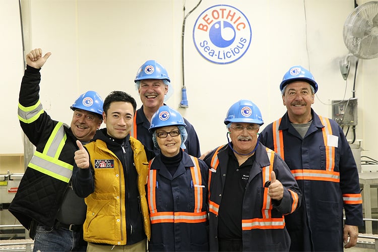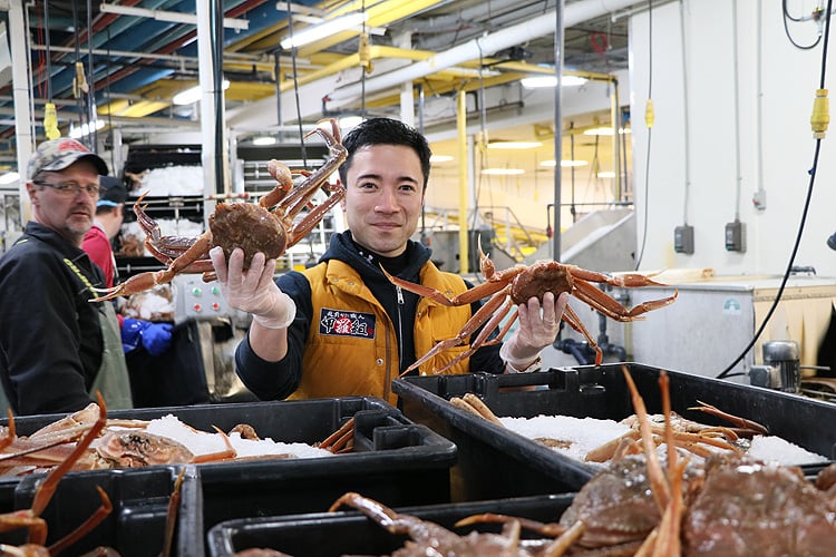 カナダ産のカニの買い付けは大手水産商社に仲介に入ってもらうのが一般的で、現地でのカニの検品や値決め交渉は専属の商社マンが行いますが、メールや電話だけのやり取りでカニを仕入れするのは、越前かに職人という肩書もあるのに、正直どうなんだろうという思いがありました。どうせなら、カニの漁獲から工場での加工、製品づくりの一部始終を視察し、納得したものを仕入れしたい。そんな思いから今回のカナダ買い付けの旅を決意しました。