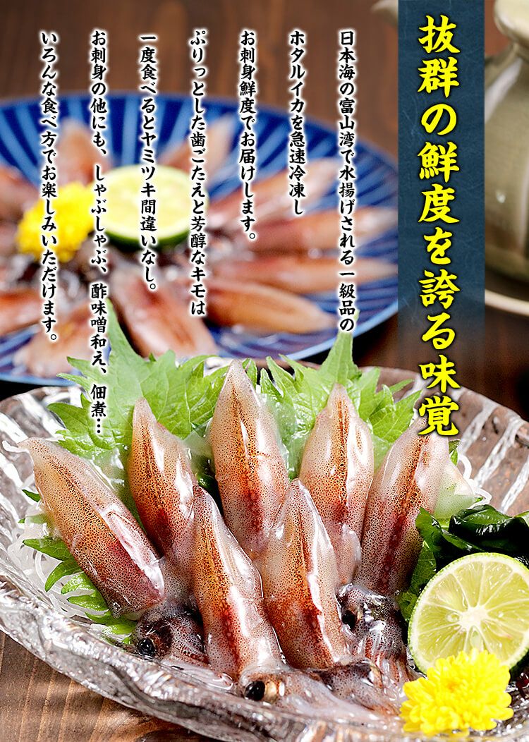 他の画像を見る ぷりっとした歯ごたえと芳醇なキモは一度食べるとヤミツキに! 日本海富山湾の一級品!【お刺身用】富山県産 生ほたるいか(1パック 12尾入り) お歳暮 年末年始 送料無料 クール便(冷凍) 価格 ¥ 1,999 税込 在庫切れ 詳細を見る お気に入りに登録する