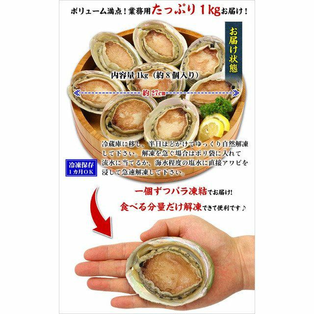 他の画像を見る まさに貝の王様!身質の柔らかさと磯の風味が抜群! 高級あわび1kg(約8個入り/殻付き) お歳暮 年末年始 送料無料 クール便(冷凍) 価格 ¥ 8,999 税込 詳細を見る お気に入りに登録する
