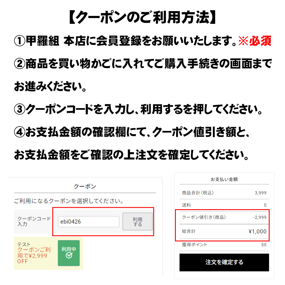 クーポンのご利用方法は下記をご確認ください。